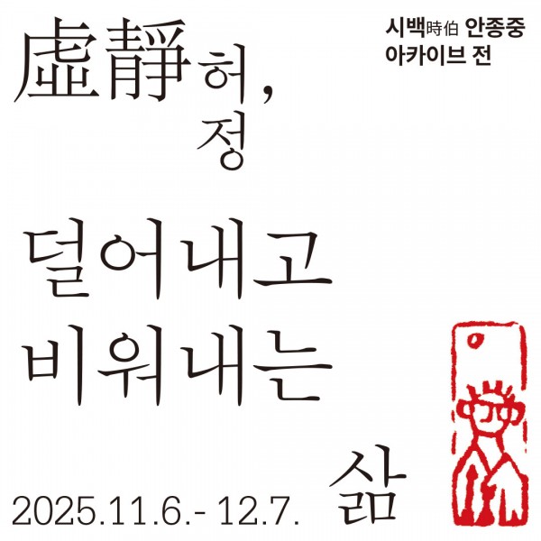 <허정, 덜어내고 비워내는 삶> 시백 안종중 아카이브 전 페이지 정보 본문 시백 안종중 아카이브 전 <허정, 덜어내고 비워내는 삶> 11월 6일(목)~12월 7일(일) 미술관 2층 전시실 이전글 목록
